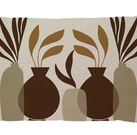 • Capa de Almofada Linho Estampada Vasos Marrom/Bege – Retangular