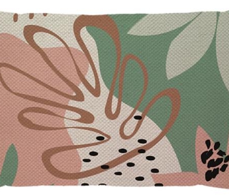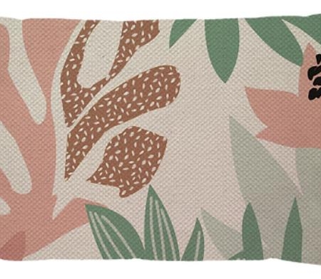 • Capa de Almofada Linho Estampada Folhagem Rosa/Menta- Retangular
