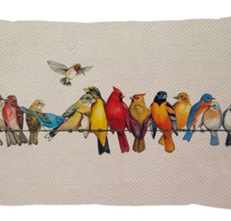 • Capa de Almofada Linho Estampada Passarinhos Coloridos