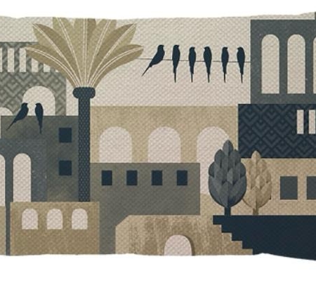 • Capa de Almofada Linho Estampada Passarinhos Azul/Bege – Retangular